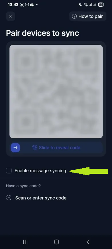 - Optional message syncing across devices using end-to-end encrypted app pairing. Go to Settings → Syncing and Backup → Paired Devices → Tap + to start a new sync → Enable message syncing.