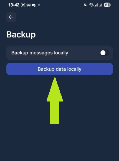 - Tap “Back up data locally” to create and save your current Status profile backup file. You can choose any location on your device to save your backup file.